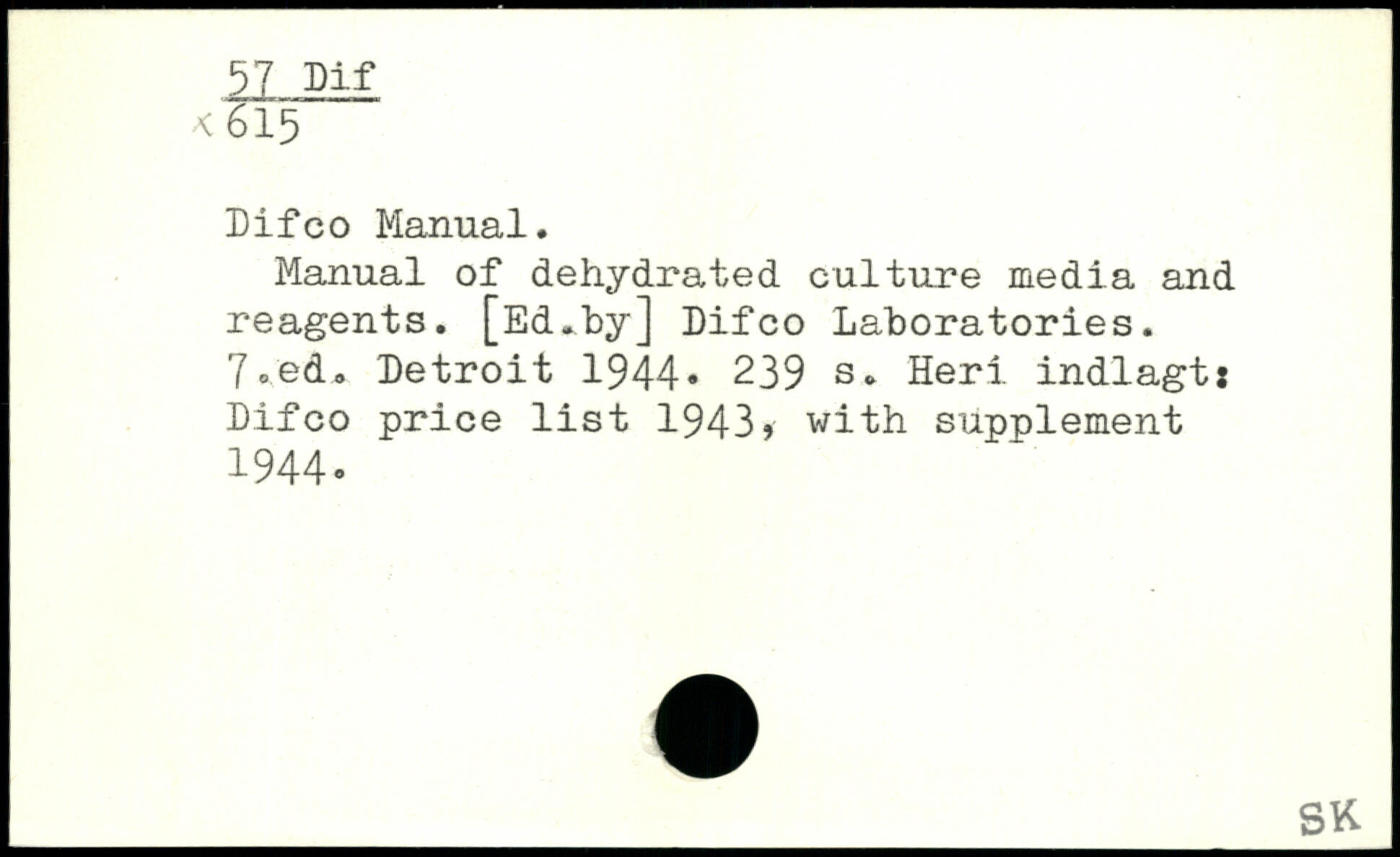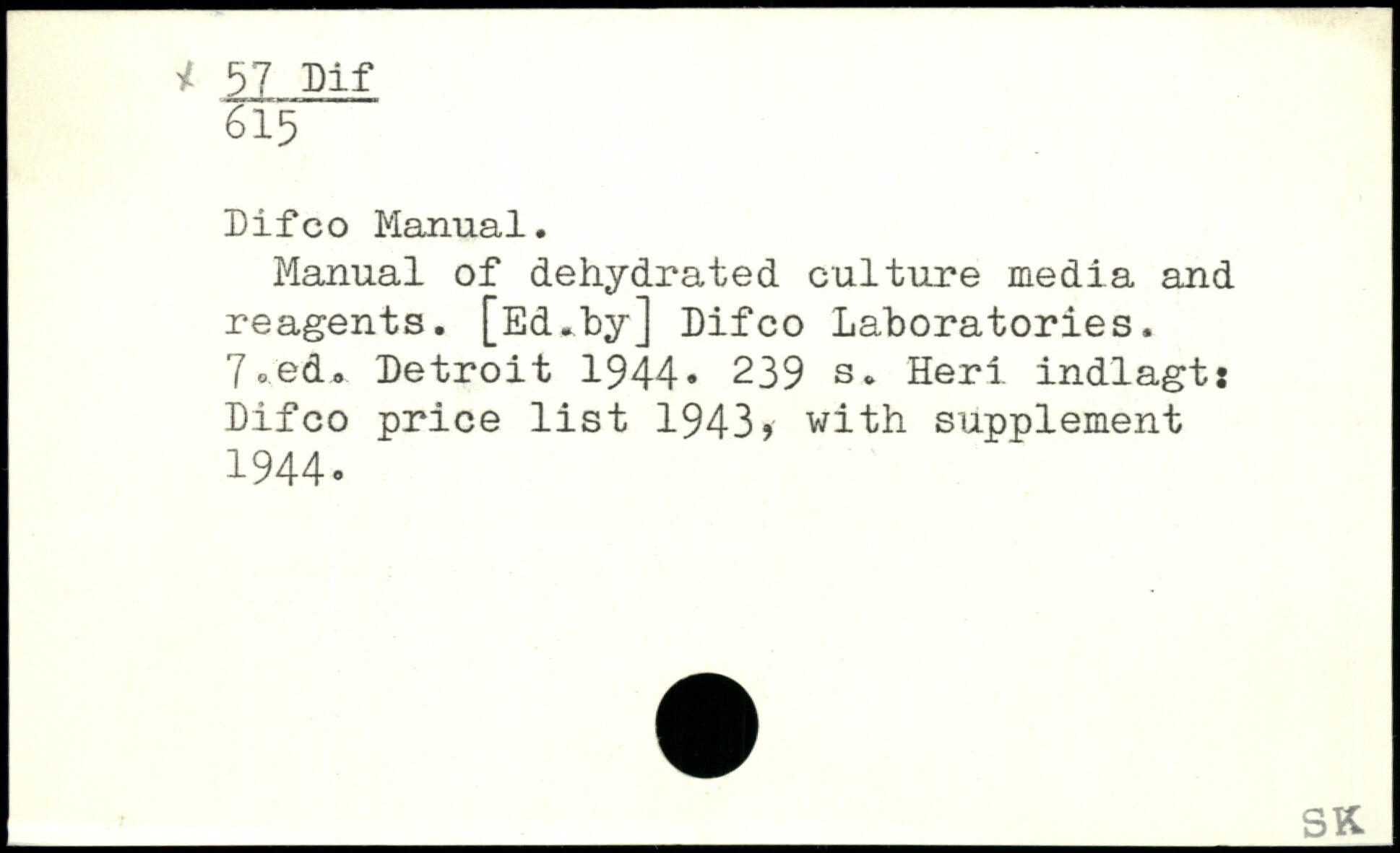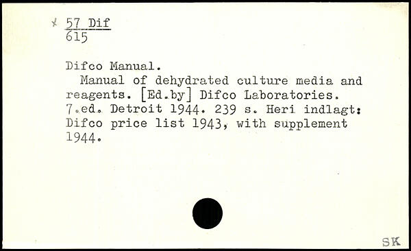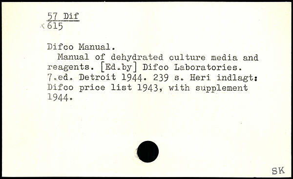 Difco Manual. Manual of dehydrated culture media and reagents. [Ed.by] Difco Laboratories. 7 ®.ed. Detroit 1944.