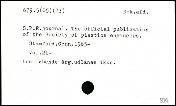 S.P.E.journal. The official publication of the Society of plastics engineers. Stamford,Conn.1965-