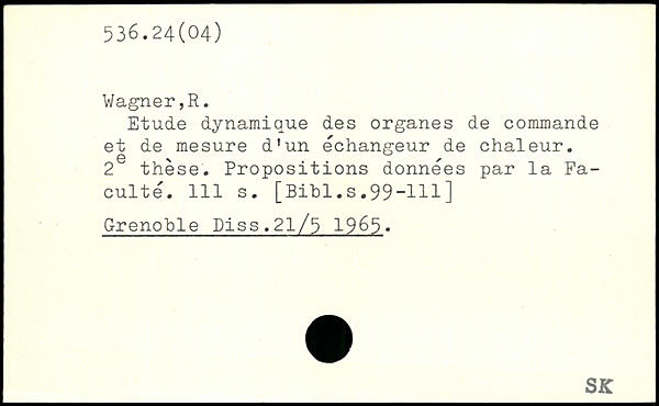 Etude dynamique des organes de commande et de mesure d’un échangeur de chaleur. 2 thèse. Propositions données par la Faculté.