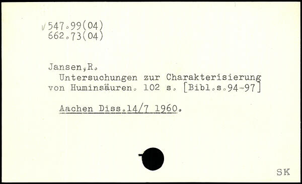 Untersuchungen zur Charakterisierung von Huminsäureno