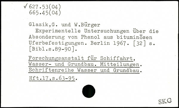 Experimentelle Untersuchungen über die Absonderung von Phenol aus bituminösen Uferbefestigungen.