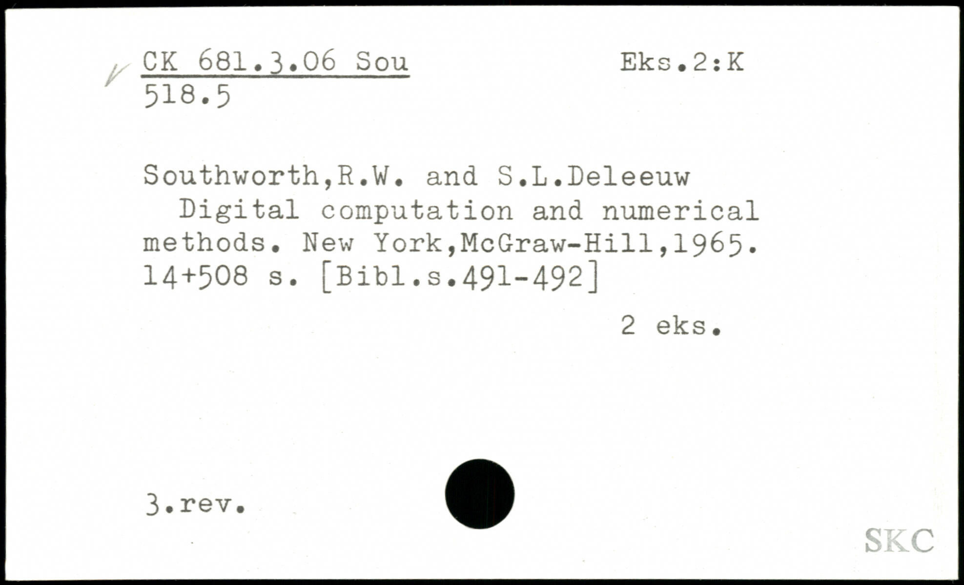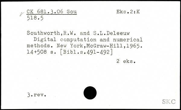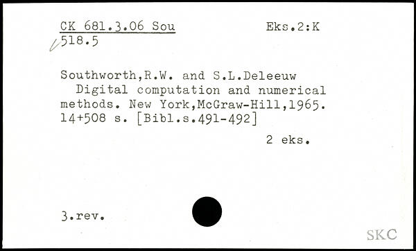 Southworth,R.W. and S.L.Deleeuw Digital computation and numerical methods.