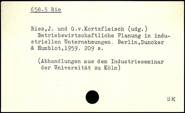 Betriebswirtschaftliche Planung in industriellen Unternehmungen.