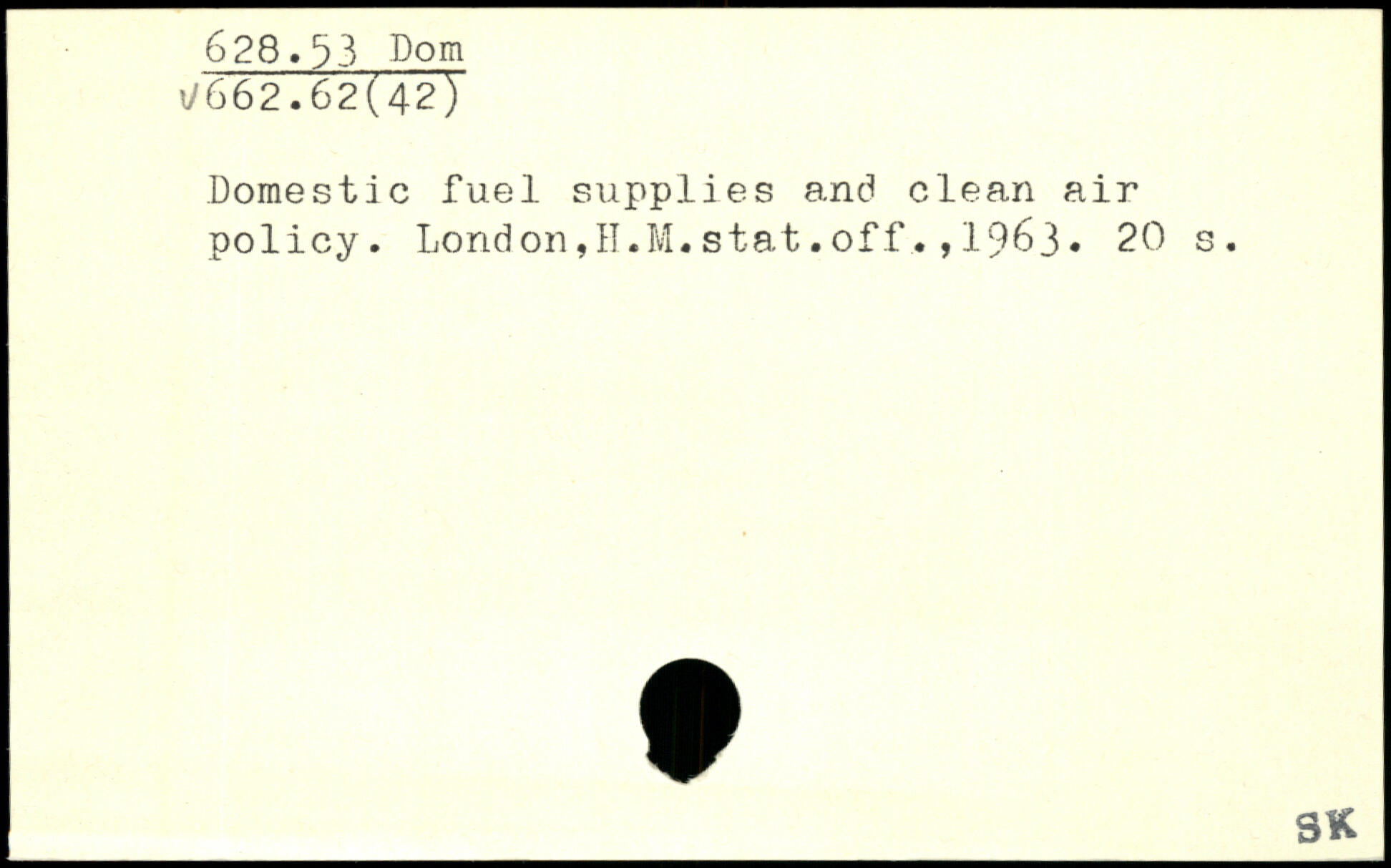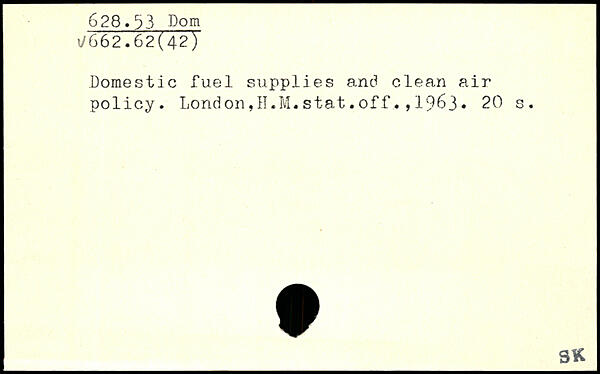 Domestic fuel supplies and clean air policy. London,H.M.stat.off.,1963.