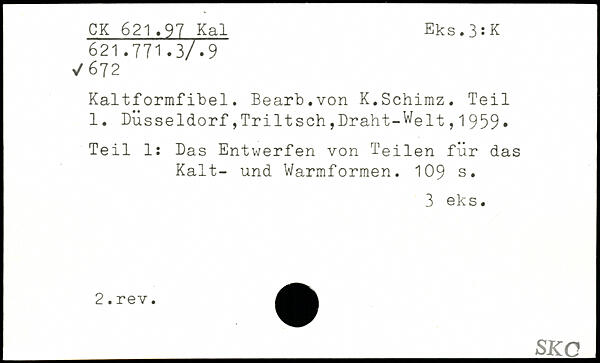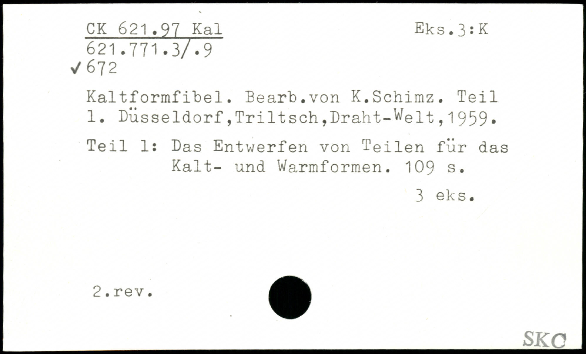 Kaltformfibel. Bearb.von K.Schimz. Teil 1.