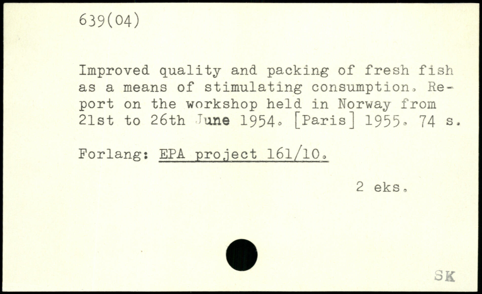 Improved quality and packing of fresh fish as a means of stimulating consumption, Report on the workshop held in Norway from 21st to 26th Tune 1954
