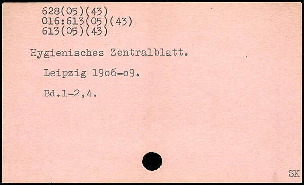 Hygienisches Zentralblatt. Leipzig 19o6-o9.