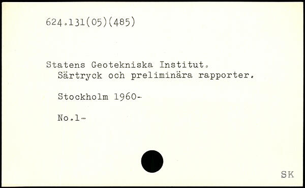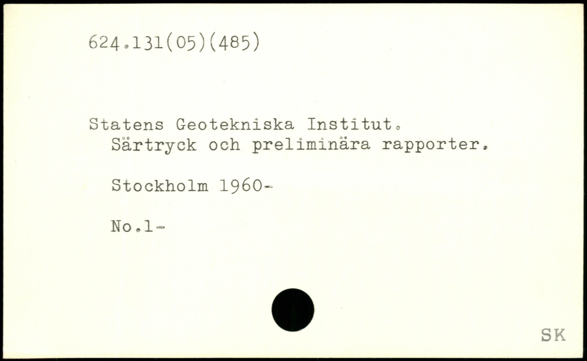 Statens Geotekniska Institut, Särtryck och preliminära rapporter