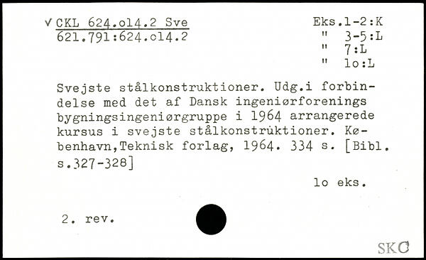 Svejste stålkonstruktioner. Udg.i forbindelse med det af Dansk ingeniørforenings bygningsingeniørgruppe i 1964 arrangerede kursus i svejste stålkonstruktioner.