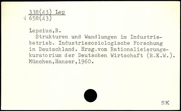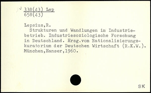 Strukturen und Wandlungen im Industriebetrieb, Industriesoziologische Forschung in Deutschland. Hrsg.vom Rationalisierungskuratorium der Deutschen Wirtschaft (R0K.W,).