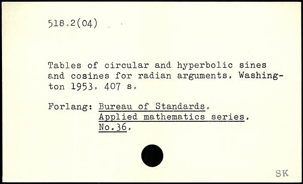 Tables of circular and hyperbolic sines and cosines for radian arguments