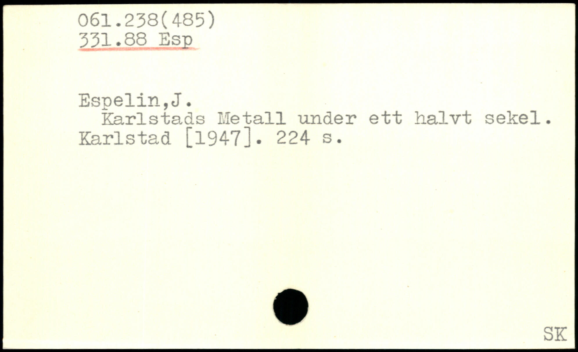 Karlstads Metall under ett halvt sekel. Karlstad [1947].