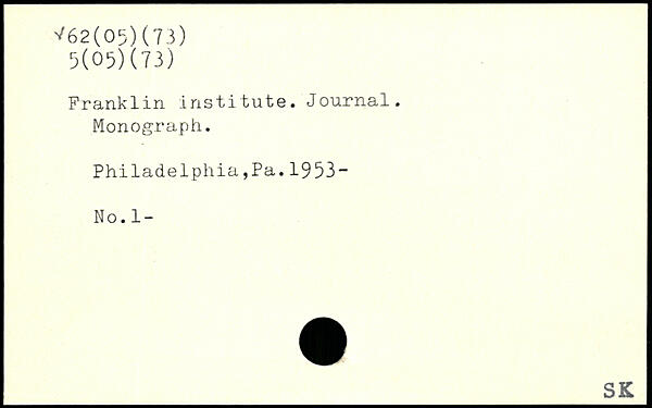 Franklin institute. Journal. Monograph. Philadelphia,Pa.1953-N o. 1 -