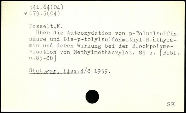 über die Autooxydation von p-Toluolsulfinsaure und Bis-p-tolylsulfonmethyl-N-äthyla-min und deren Wirkung bei der Blockpolymerisation von Methylmethacrylat.