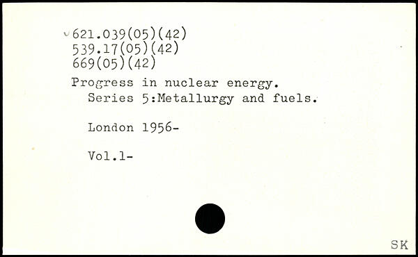 Progress in nuclear energy. Series 5 Metallurgy and fuels. London 195&- Vol.l-