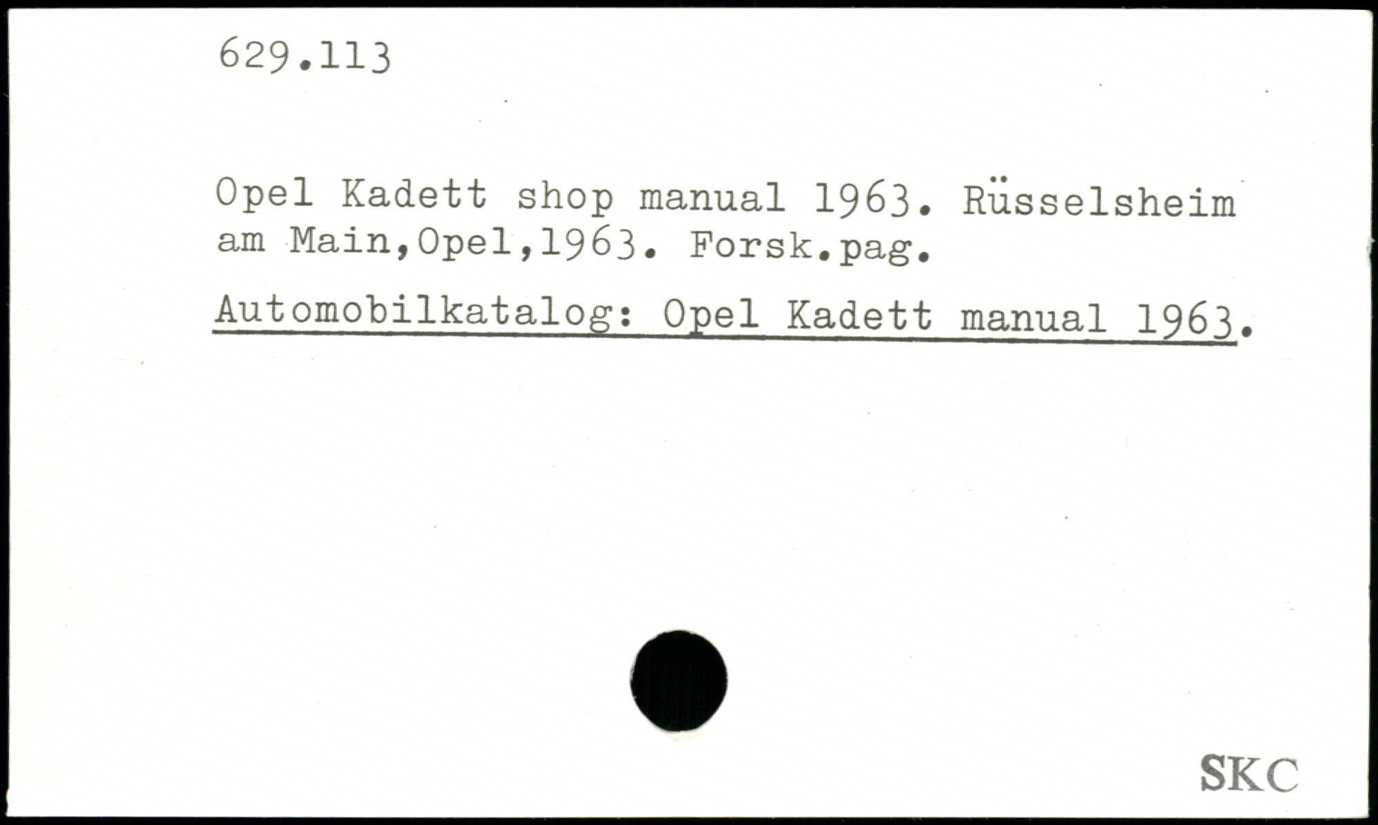 Opel Kadett shop manual 1963.