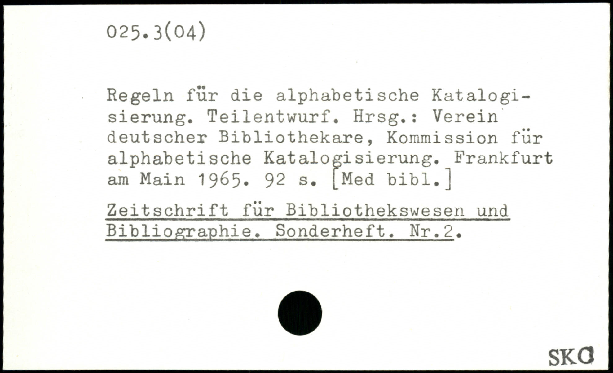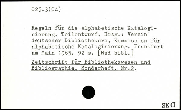 Regeln für die alphabetische Katalogisierung. Teilentwurf. Hrsg.: Verein deutscher Bibliothekare, Kommission für alphabetische Katalogisierung. Frankfurt am Main 19&5