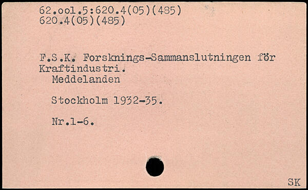 F.S.K. Forsknings-Sammanslutningen f.ör Kraftindustri. Meddelanden