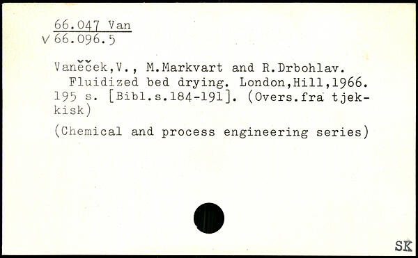 Vanecek,V., M.Markvart and R.Drbohlav. Fluidized bed drying.