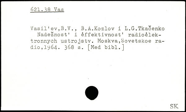 Vasil'ev,B.V., B.A.Kozlov i L.G.Tkacenko Nadeznost' i effektivnost' radioelek-tronnych ustrojstv. Moskva,Sovetskoe radio, 1^64.
