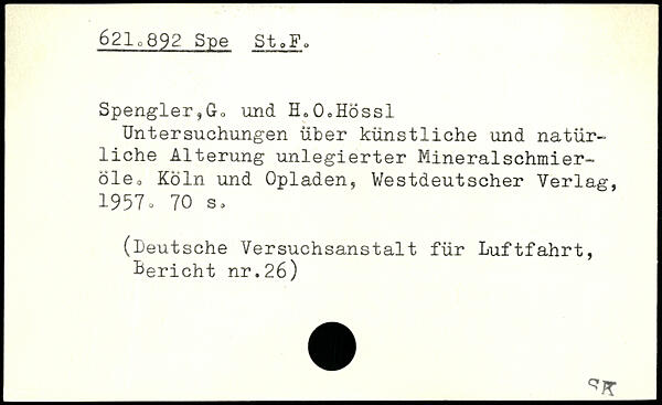 Spengler,Go und H,0oHÖssl Untersuchungen über künstliche und natürliche Alterung unlegierter Mineralschmieröle <>