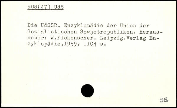 Die UdSSR. Enzyklopädie der Union der Sozialistischen Sowjetrepublikeno Herausgebers W.Fickenscher. Leipzig.Verlag Enzyklopädie ?1959.