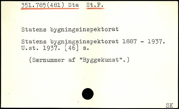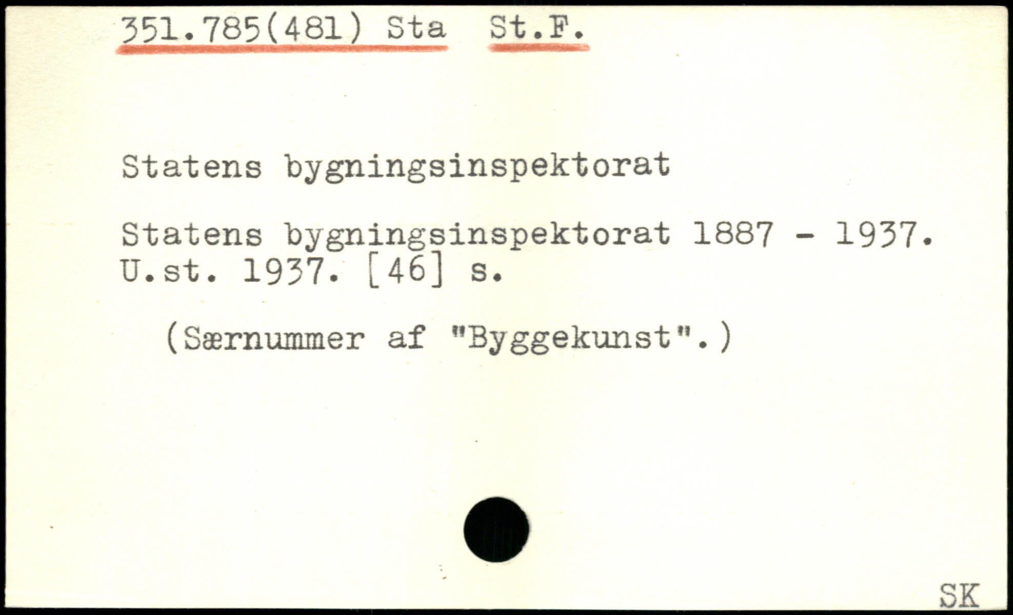 Statens bygningsinspektorat Statens bygningsinspektorat 1887 - 1937. U.st. 1937. [46] s.