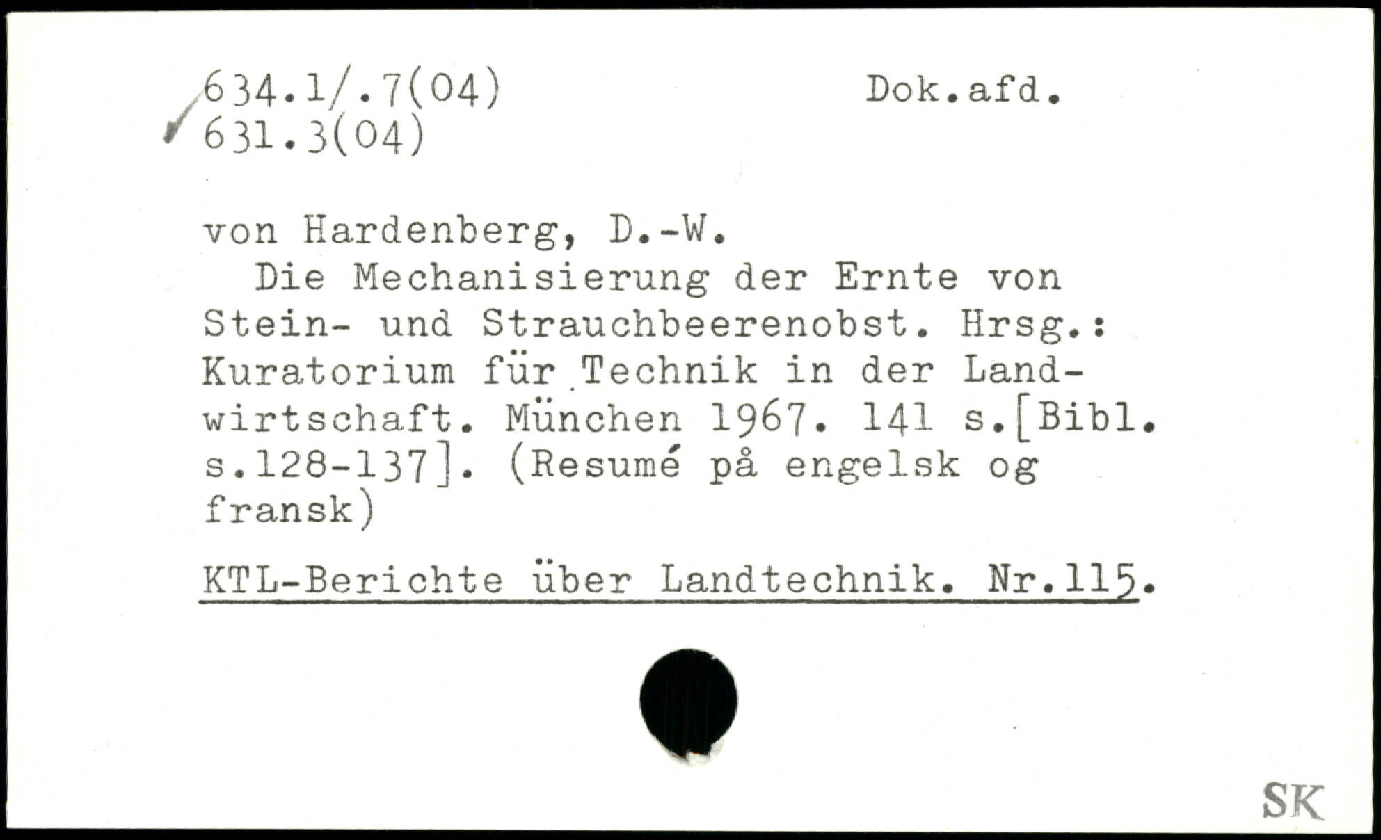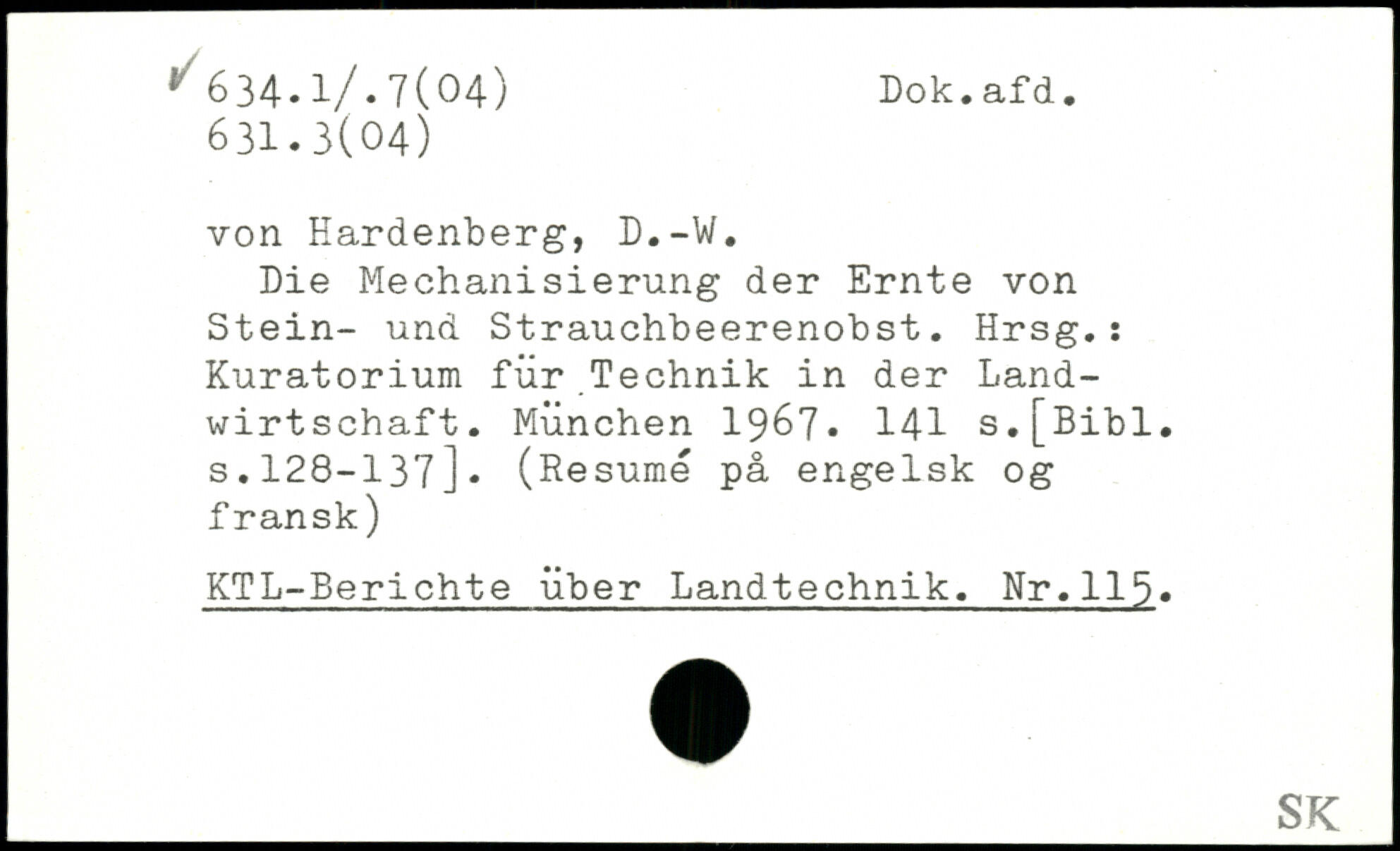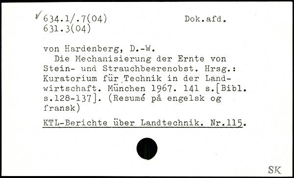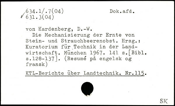 von Hardenberg, D.-W. Die Mechanisierung der Ernte von Stein- und Strauchbeerenobst. Hrsg.: Kuratorium für Technik in der Landwirtschaft.