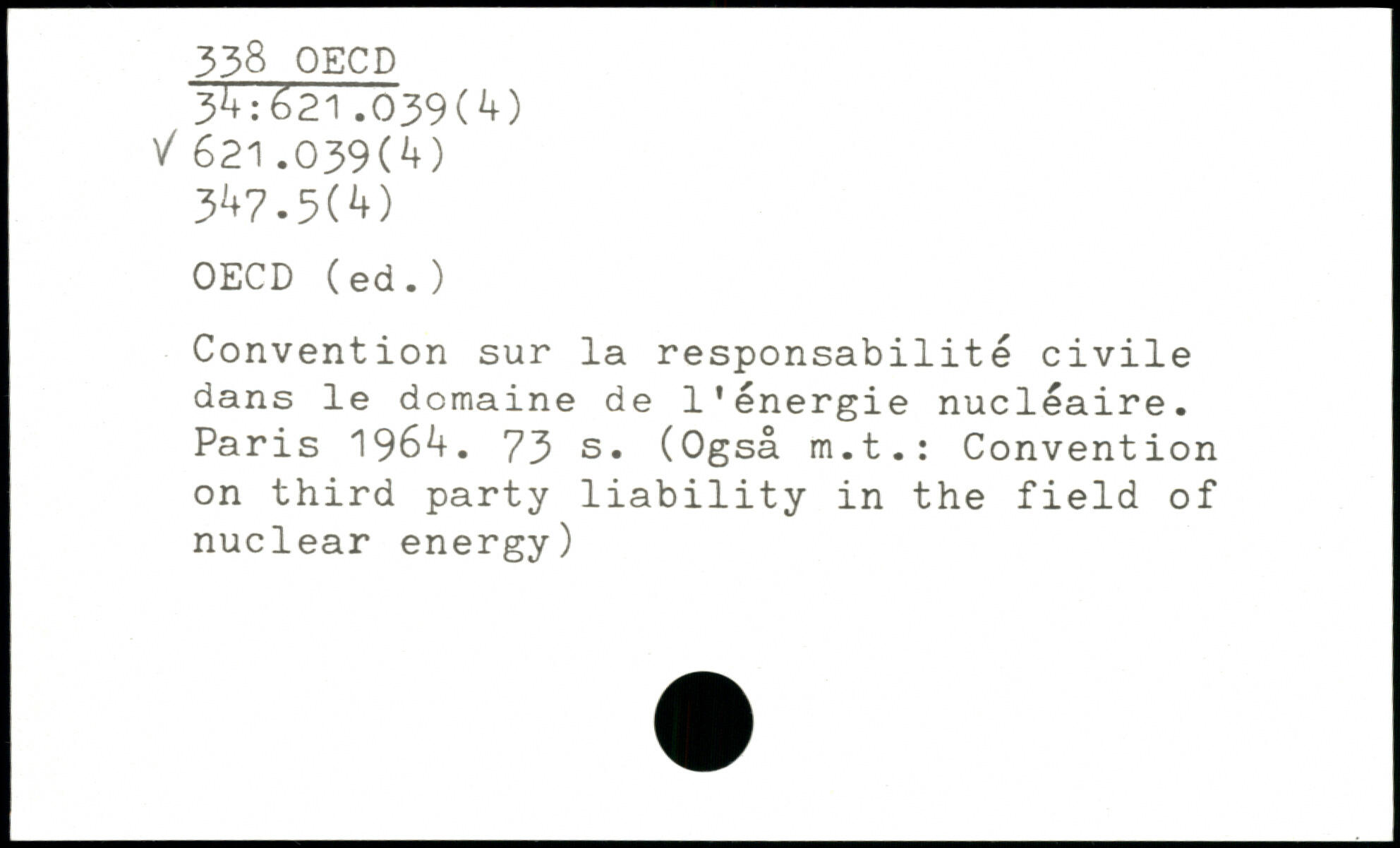 Convention sur la responsabilité civile dans le domaine de l'énergie nucléaire.