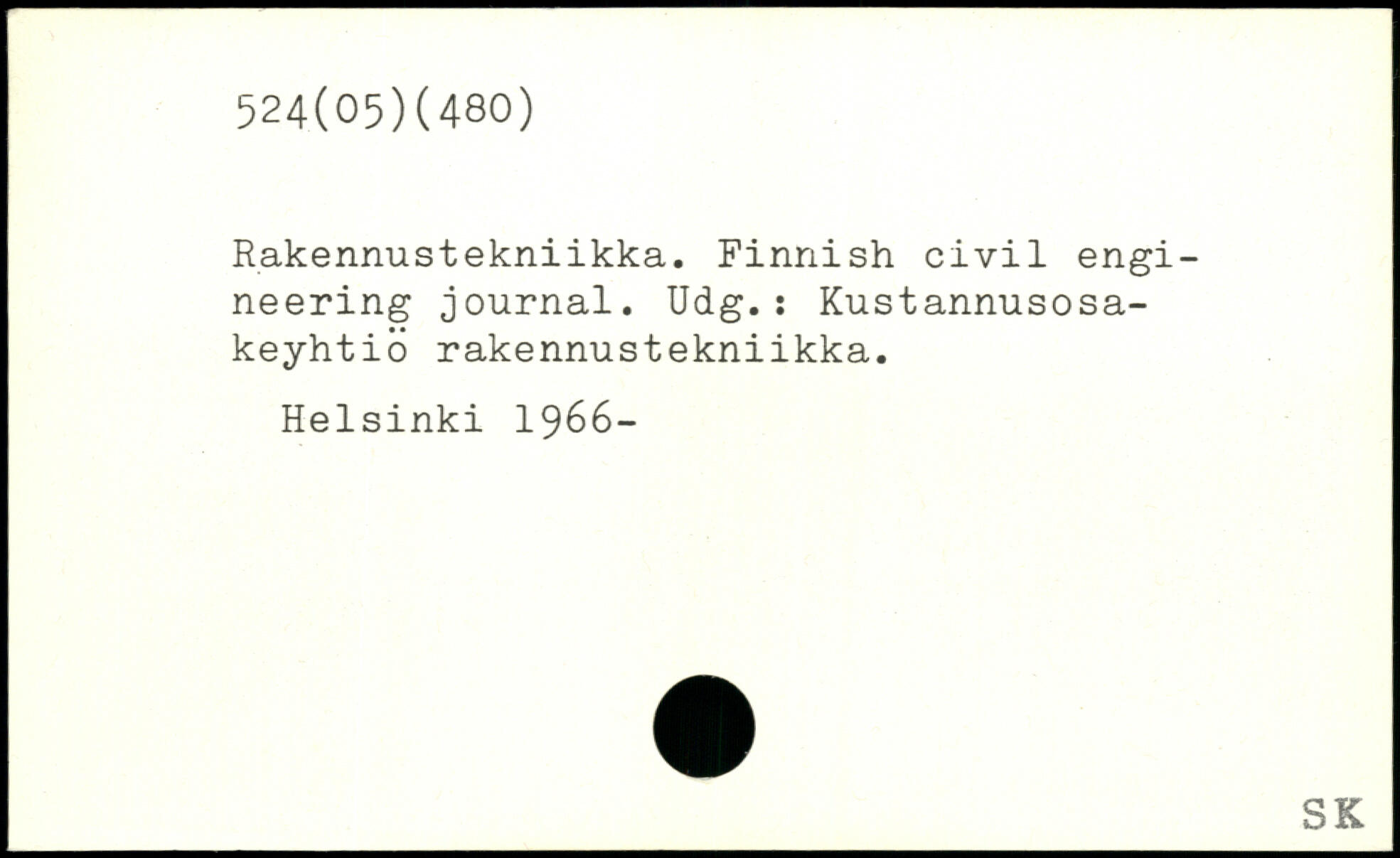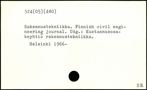 Rakennustekniikka. Finnish civil engineering journal. Udg.: Kustannusosa-keyhtio rakennustekniikka.