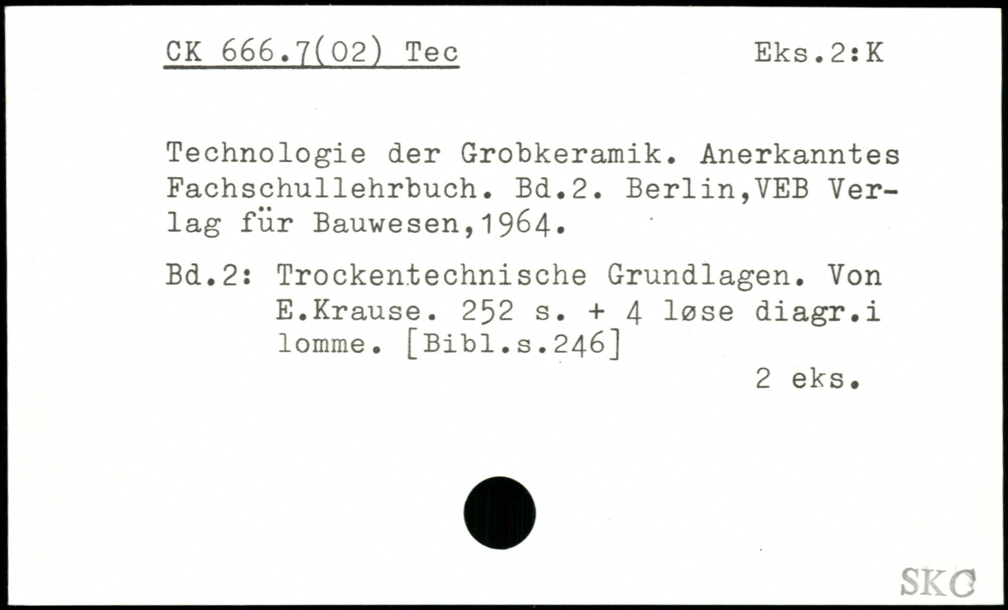 Technologie der Grobkeramik. Anerkanntes Fachschullehrbuch.