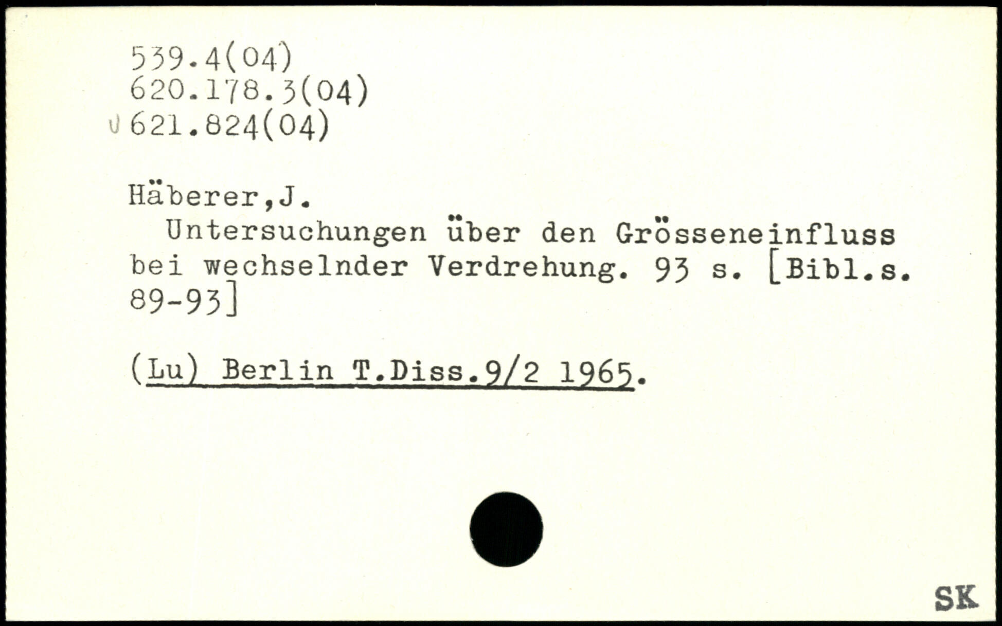 Untersuchungen über den Grösseneinfluss bei wechselnder Verdrehung.