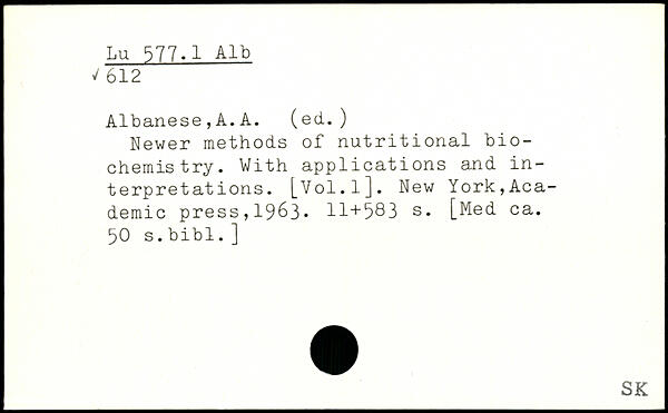 Newer methods of nutritional biochemistry. With applications and interprétât ions. [Vol.l].