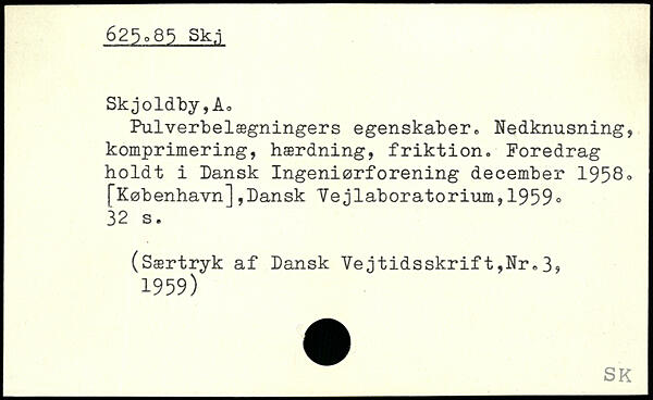 Pulverbelægningers egenskaber, Nedknusning, komprimering, hærdning, friktion. Foredrag holdt i Dansk Ingeniørforening december 1958