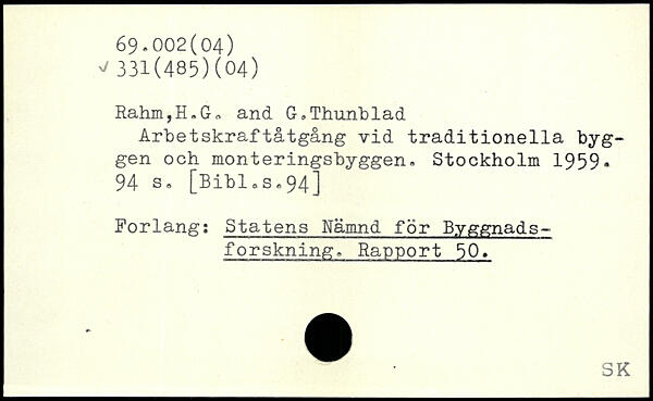 Rahm,H,Gn and G.Thunblad Arbetskraftåtgång vid traditionella byggen och monteringsbyggen.