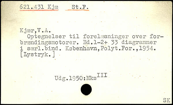 Optegnelser til forelæsninger over forbrændingsmotorer. Bd.l-2+ 33 diagrammer i saerl.bind. København,Polyt.For., 1954. [Lystryk.] Udg.igSOsMks111