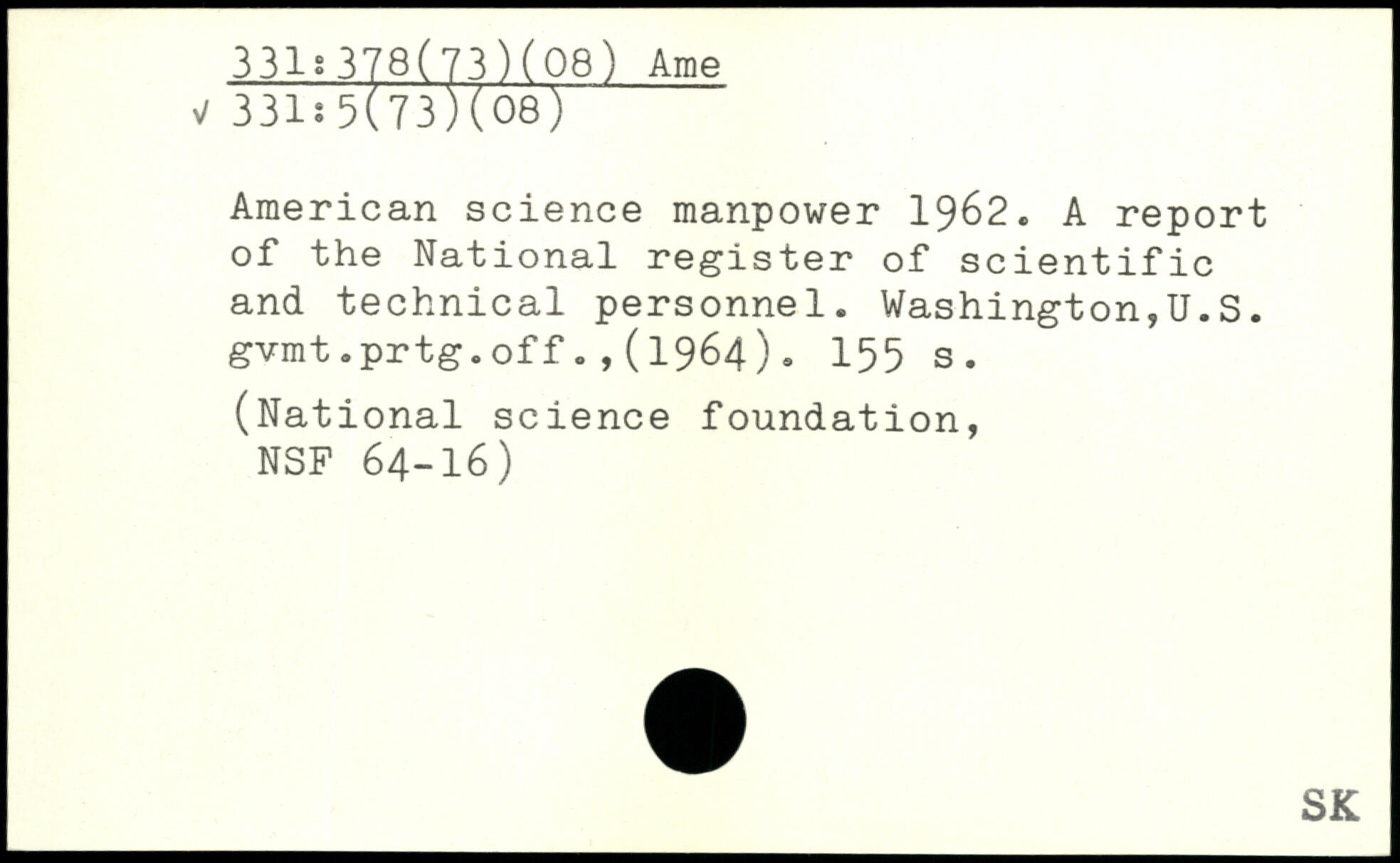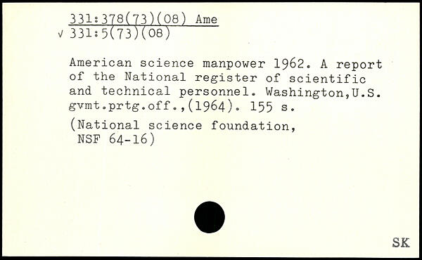 American science manpower 1962. A report of the National register of scientific and technical personnel. Washington,!!.S. gvmt.prtg.off.,(1964).
