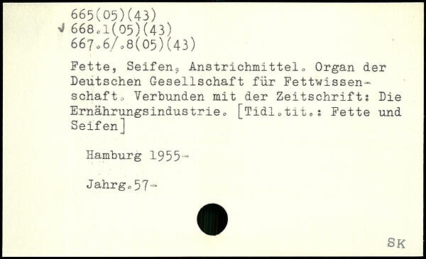 Fette, Seifen., Anstrichmittelo Organ der Deutschen Gesellschaft für Fettwissen-schafto Verbunden mit der Zeitschrift; Die E.rnährungsindustrie<> [Tidl0tit0; Fette und Seifen]