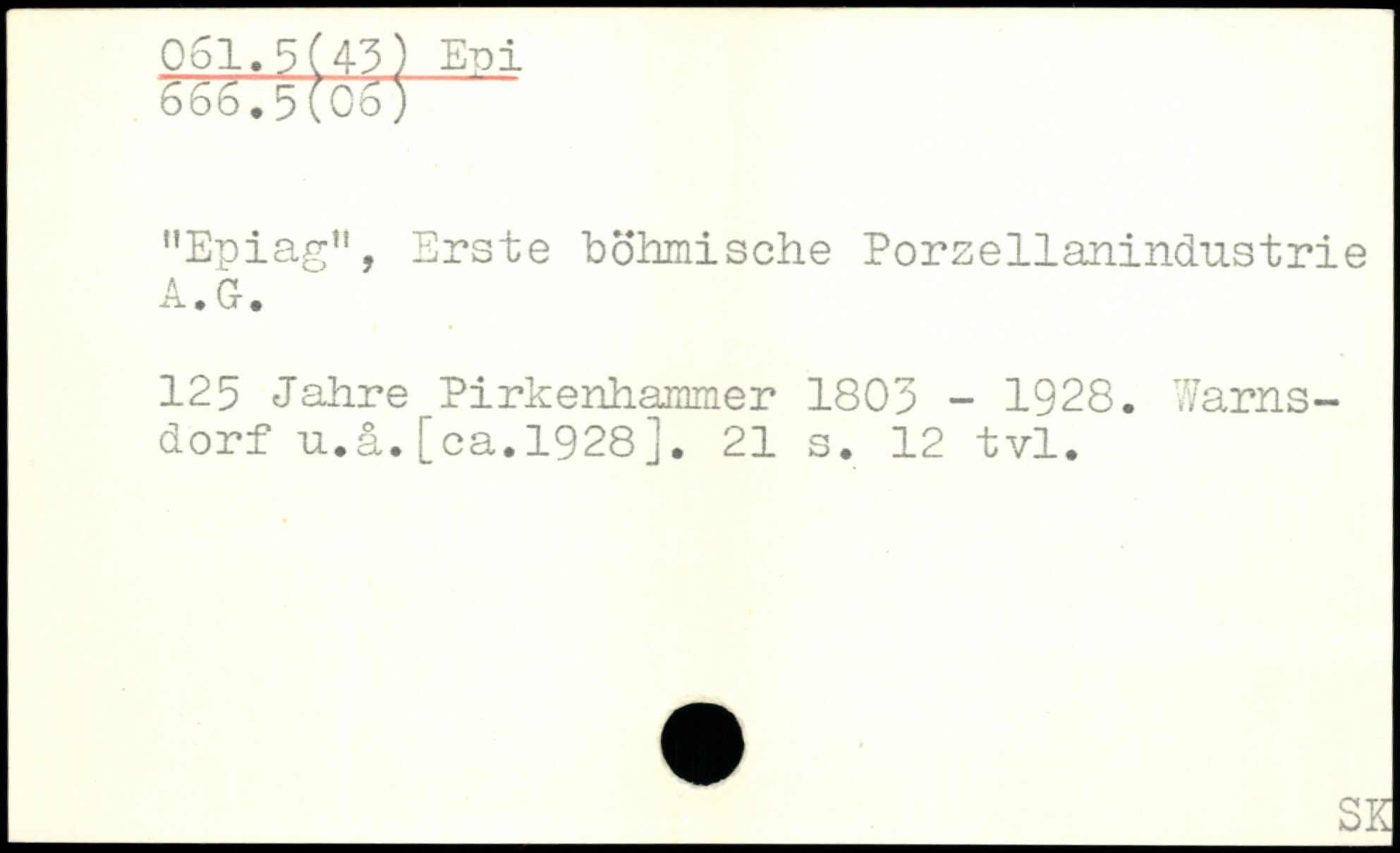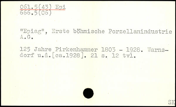 "Epiag", Erste böhmische Porzellanindustrie A. Gr. 125 Jahre _Pirkerihammer 1805 - 1928. Warnsdorf u.ä.[ca.1928].