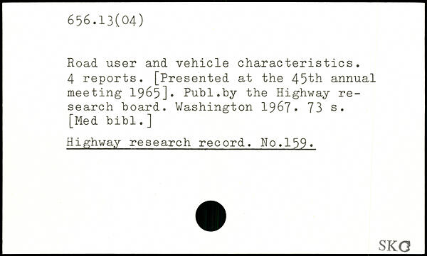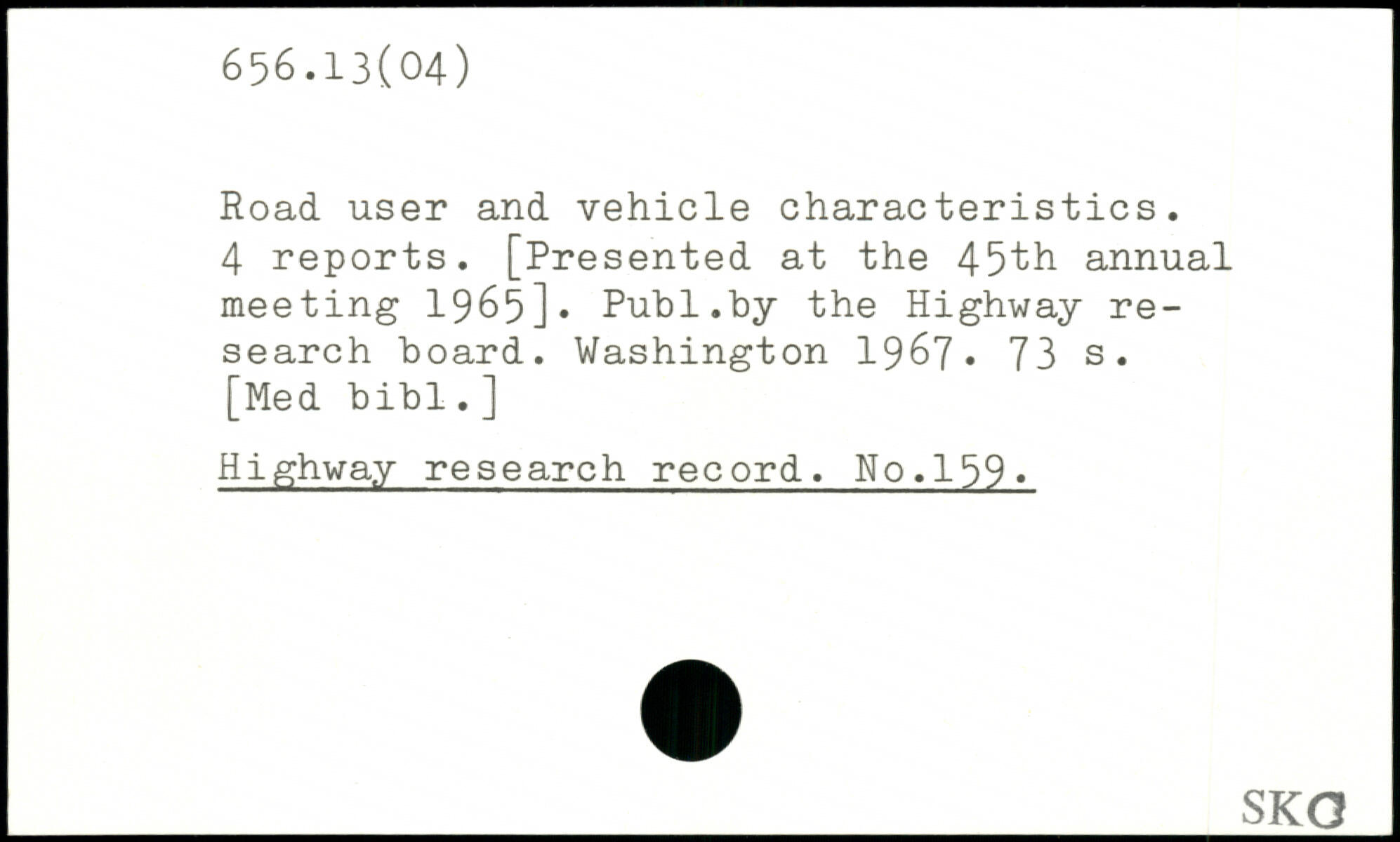 Road user and vehicle characteristics. 4 reports. [Presented at the 45th annual meeting 1965]