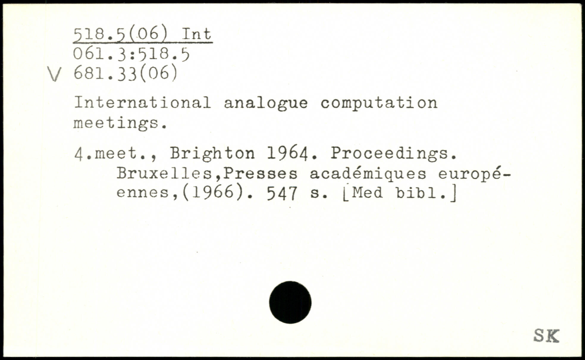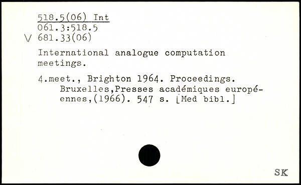 International analogue computation meetings. 4.meet., Brighton 1964. Proceedings. Bruxelles,Presses académiques européennes ,(1966).