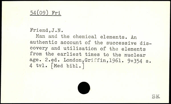 Man and the chemical elements. An authentic account of the successive discovery and utilisation of the elements from the earliest times to the nuclear age.
