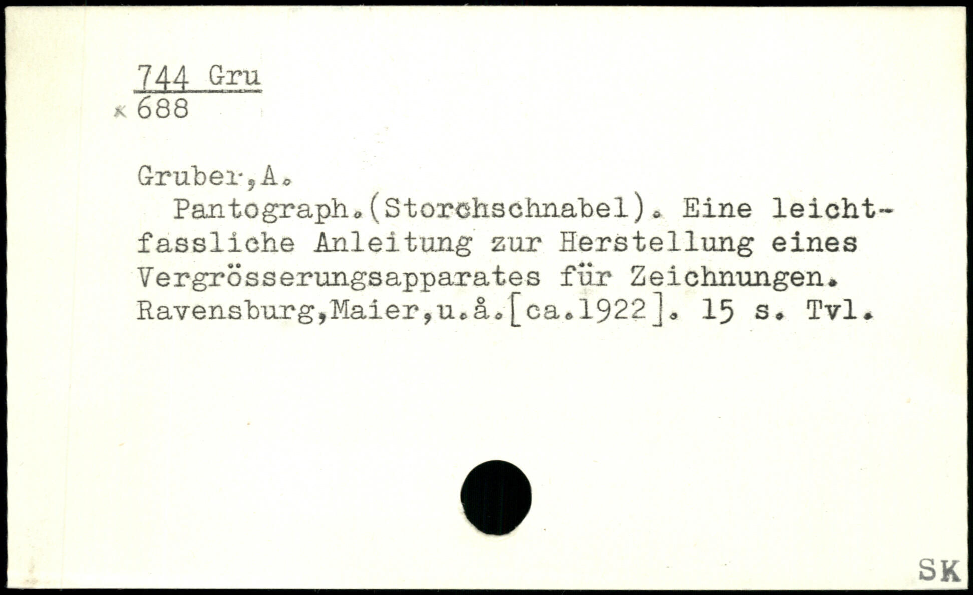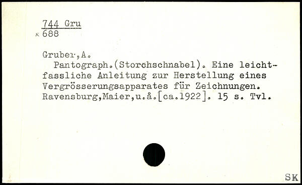 Grubei-y Ao Pantograph.(Storchschnabel). Eine leicht-fassliche Anleitung zur Herstellung eines Vergrösserungsapparates für Zeichnungen. Ravensburg,Maier,Ucä0[ca.1922J.