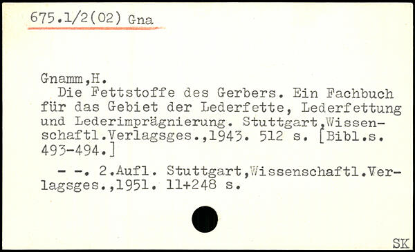 Die Fettstoffe des Gerbers. Ein Fachbuch für das Gebiet der Lederfette, Lederfettung und Lederimprägnierung. Stuttgart.Wissenschaf tl .Verlagsges. ,1943.