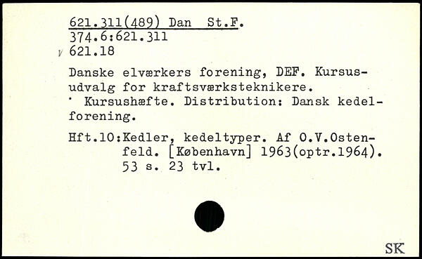 Danske elværkers forening, DEF. Kursusudvalg for kraftsværksteknikere. . Kursushæfte. Distribution: Dansk kedelforening. Hft.10:Kedler, kedeltyper. Af O.V.Osten-feld.