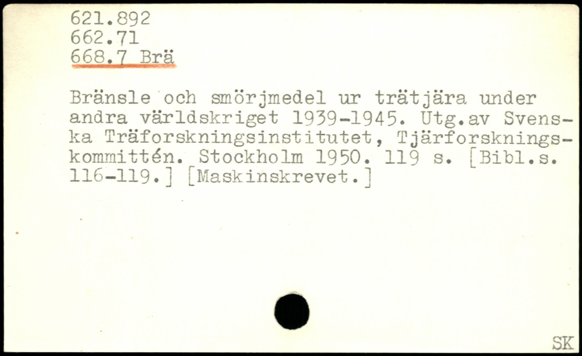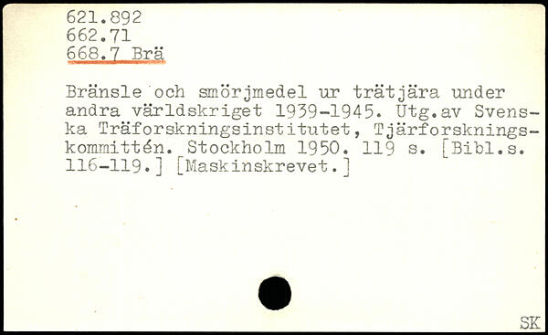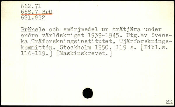 Bränsle och smörjmedel ur trätjära under andra världskriget 1939-1945. Utg.av Svenska Träforskningsinstitutet, Tjärforsknings-kommittén.r