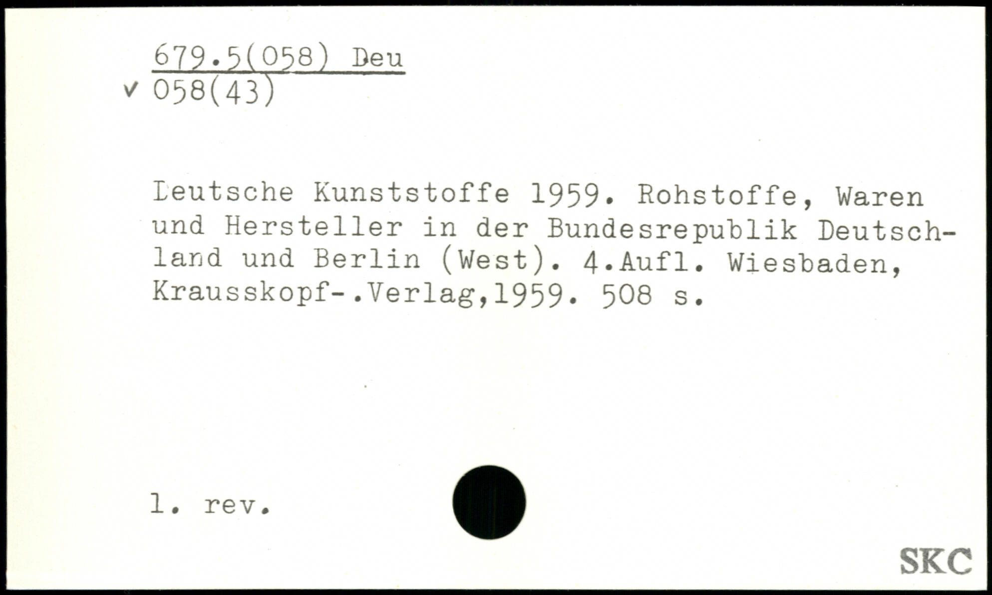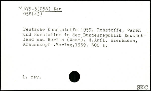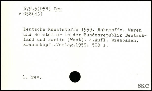 Leutsche Kunststoffe 1959. Rohstoffe, Waren und Hersteller in der Bundesrepublik Deutschland und Berlin (West).