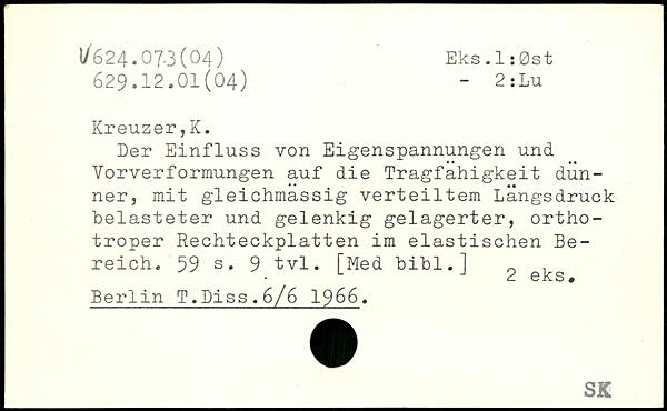 Der Einfluss von Eigenspannungen und Vorverformungen auf die Tragfähigkeit dunner, mit gleichmassig verteiltem Längsdruck belasteter und gelenkig gelagerter, ortho-troper Rechteckplatten im elastischen Bereich.
