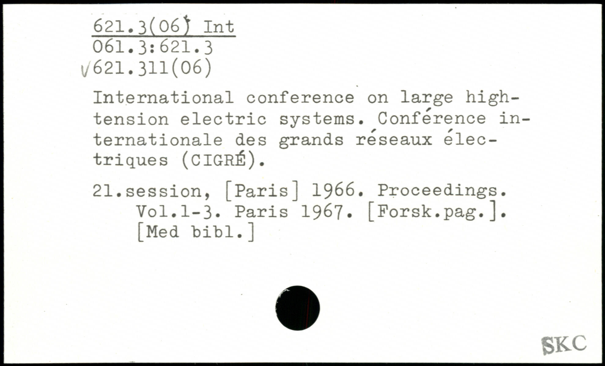 International conference on large high-tension electric systems. Conference internationale des grands reseaux électriques (CIGRÉ). 21.session