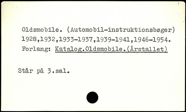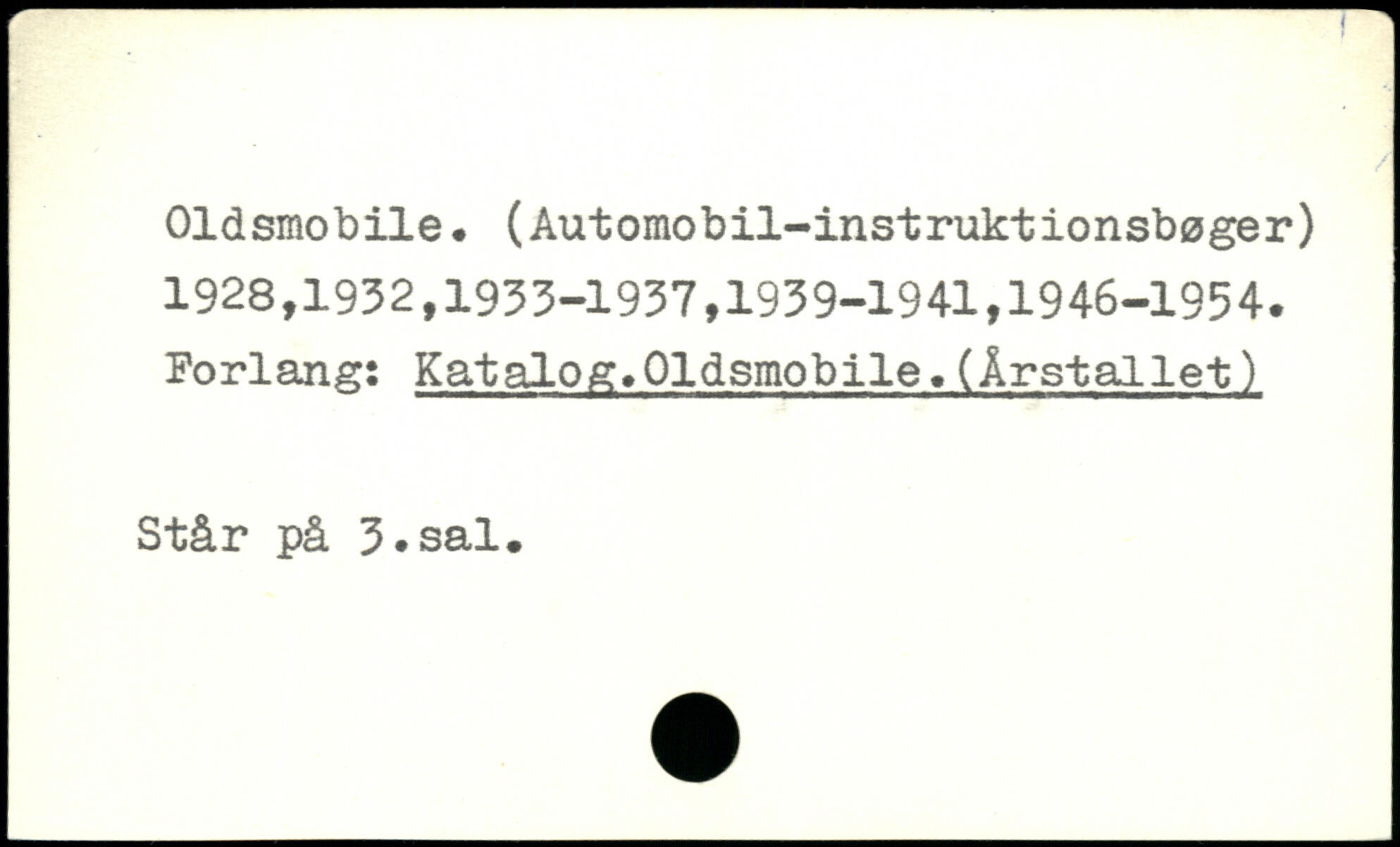 Oldsmobile. (Automobil-instruktionsbøger) 1928,1932,1933-1937,1939-1941,1946-1954. Forlang: Katalog.Oldsmobile.(Årstallet) Står på 3.sal.